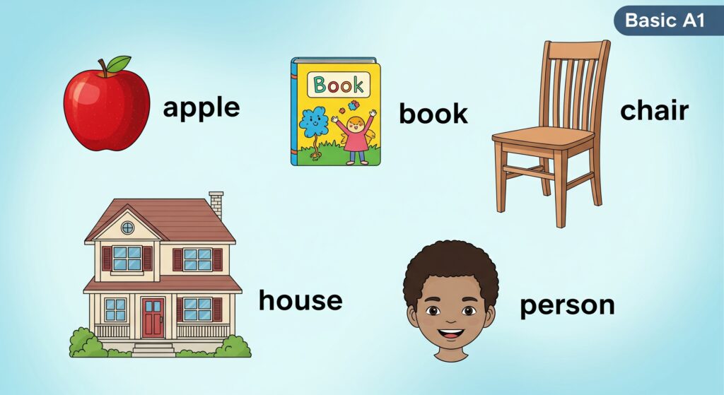 A1 vocabulary might seem small, but its impact is immense. It’s your first step into the English-speaking world, providing the tools you need to make connections, understand basic information, and confidently say, “Hello, nice to meet you!” Embrace these first words, and you’ll soon find yourself on the path to greater fluency.